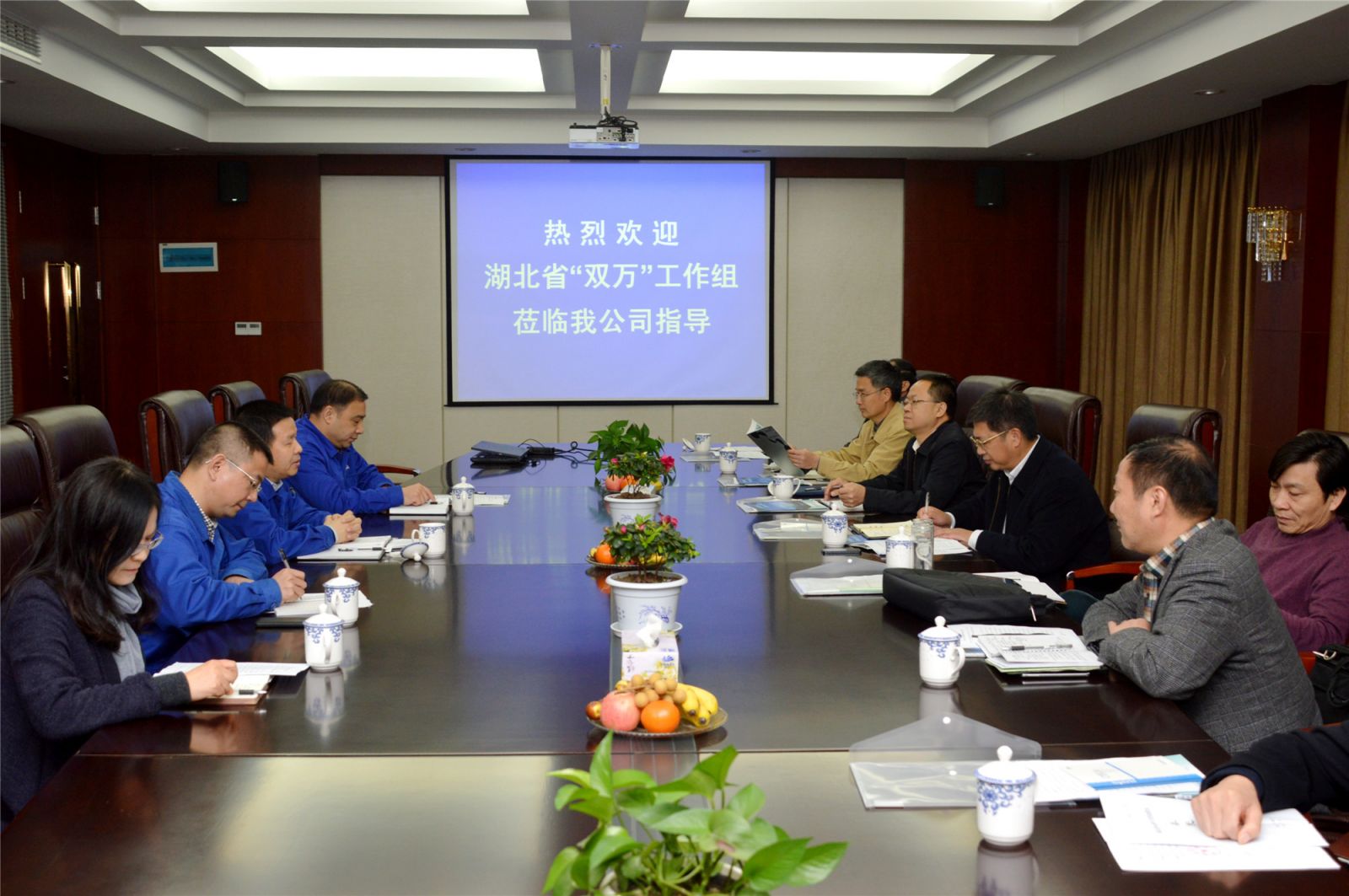 圖為“雙萬”活動(dòng)工作組成員在公司視察的場景