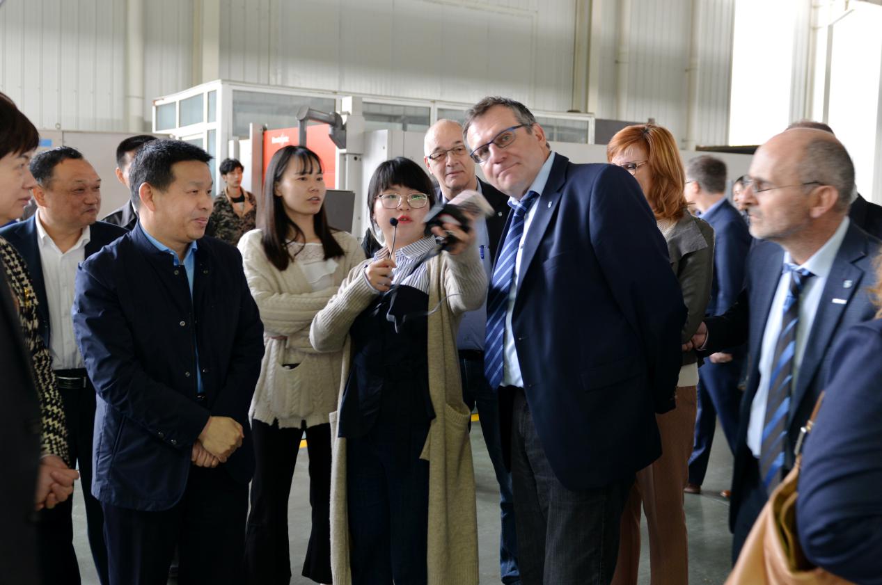 費(fèi)澤爾市長(zhǎng)一行對(duì)公司的產(chǎn)品饒有興趣,認(rèn)真聽取隨行翻譯的講解