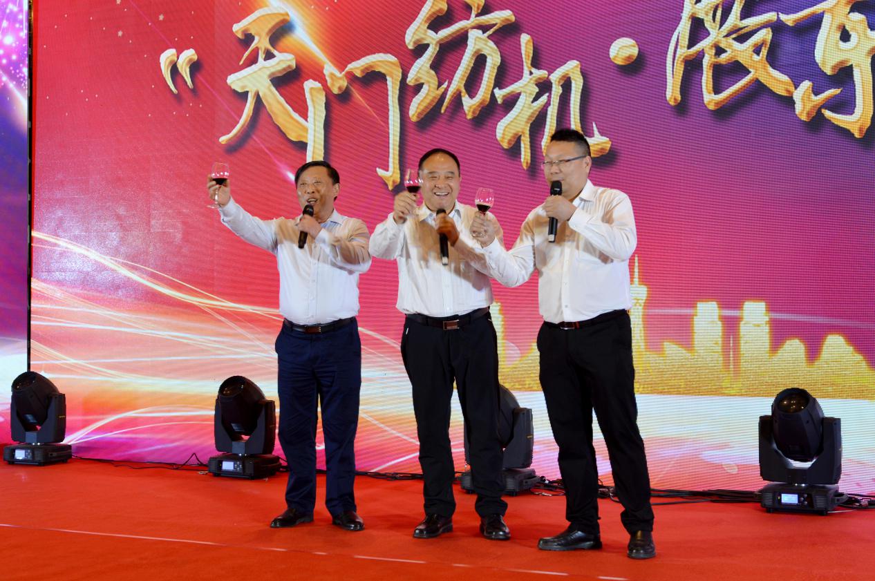 (中國紗線網(wǎng)總編王果剛、天門紡機副總經(jīng)理肖少華、展東紡織機械專件廠總經(jīng)理王國海晚宴共同祝酒)