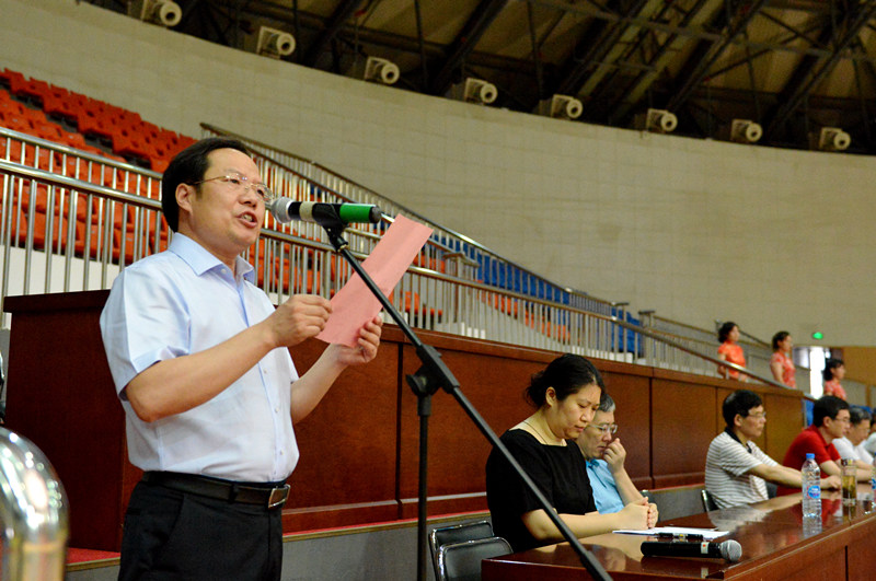 中國(guó)紡織工業(yè)聯(lián)合會(huì)黨委副書(shū)記陳偉康宣布“經(jīng)緯·天門(mén)”杯全國(guó)棉紡&化纖籃球聯(lián)賽順利閉幕。