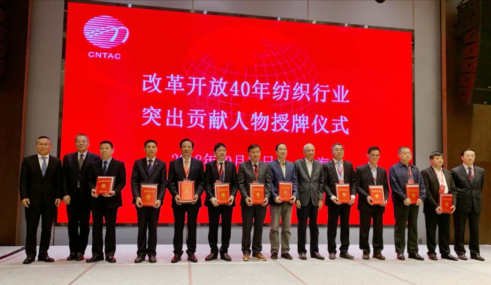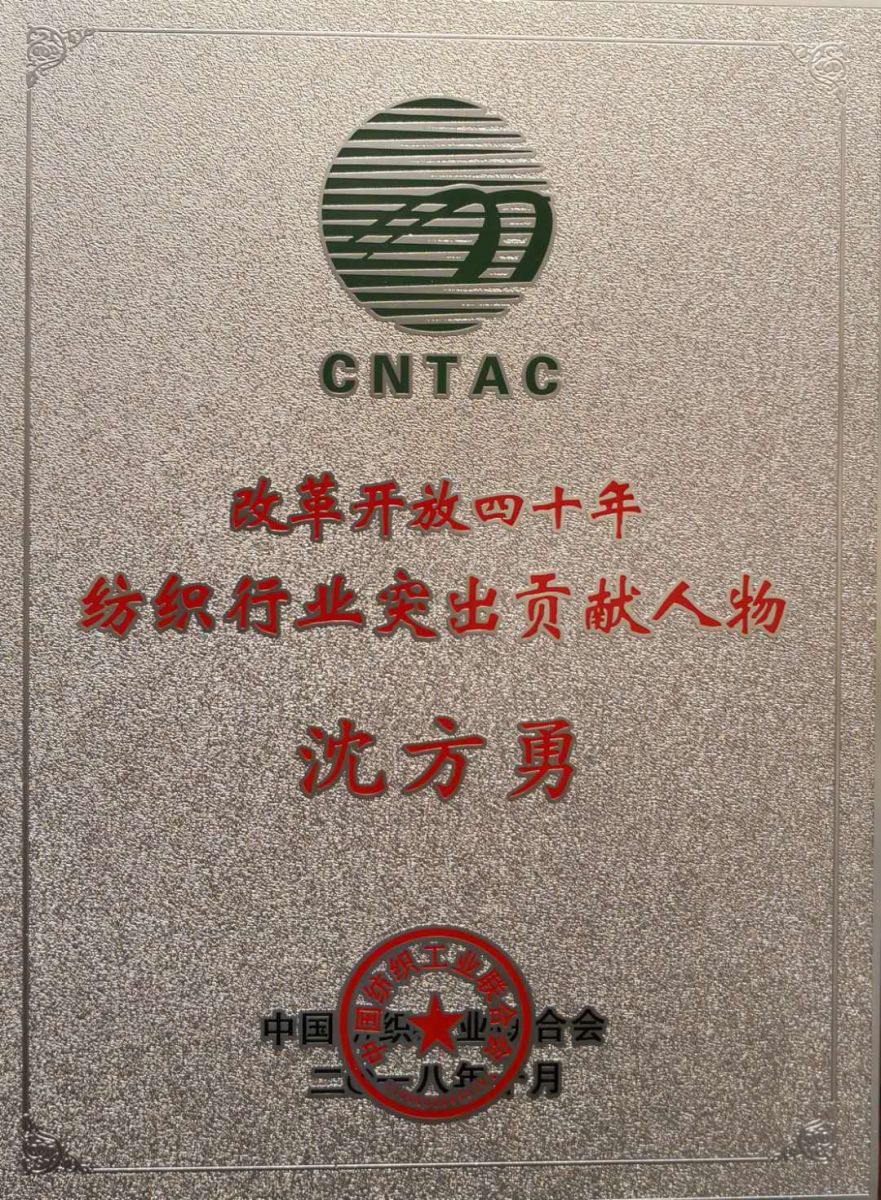 改革開放四十年,紡織工業(yè)歷經(jīng)風(fēng)雨洗禮,取得了一系列舉世矚目的發(fā)展成就,涌現(xiàn)出一批扎根行業(yè)深處、為行業(yè)發(fā)展貢獻(xiàn)畢生力量的突出貢獻(xiàn)人物。中國紡織工業(yè)聯(lián)合會為樹立責(zé)任擔(dān)當(dāng)、凝聚力量的行業(yè)典范,弘揚(yáng)改革創(chuàng)新、開放包容的時代精神,開展了改革開放四十年紡織行業(yè)突出貢獻(xiàn)人物的評選、表彰活動,并于2018年10月16日在上海召開的第四屆第四次常務(wù)理事擴(kuò)大會上舉行了授牌儀式。湖北天門紡織機(jī)械股份有限公司董事長沈方勇有幸成為登臺領(lǐng)獎的代表之一。