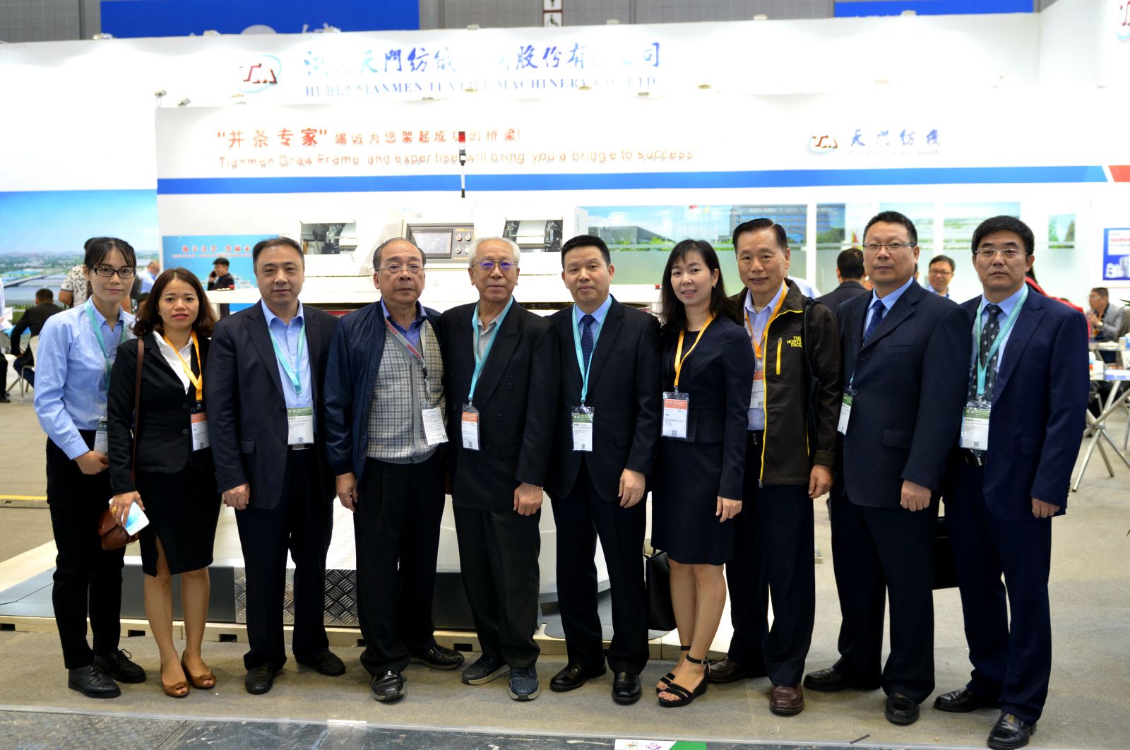 中國紡織機械協會副會長、秘書長徐林(右2),中國紡織機械協會總工程師祝憲民(左2)等領導在公司展位合影