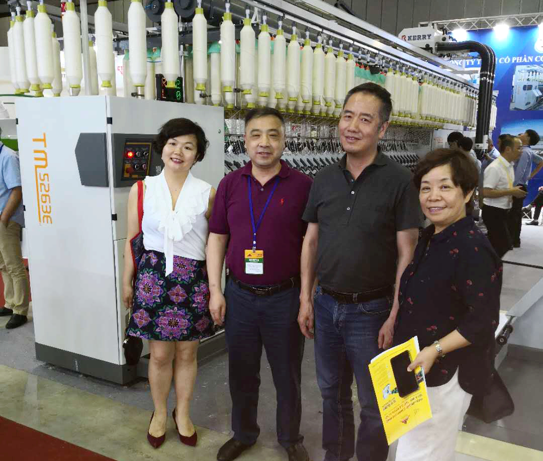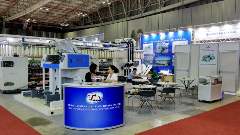 在展會(huì)上,位于A2-2D-1湖北天門(mén)紡織機(jī)械股份有限公司展位人頭攢動(dòng)、客戶云集,成為整個(gè)展會(huì)的一大亮點(diǎn),VINATEX NAM DINH、VICOTEX、 成功紡織、臺(tái)灣興業(yè)、臺(tái)南紡織、東光公司等當(dāng)?shù)仄髽I(yè)負(fù)責(zé)人親赴現(xiàn)場(chǎng)參觀,華孚時(shí)尚董事長(zhǎng)孫偉挺等嘉賓在天門(mén)紡機(jī)展位認(rèn)真觀看設(shè)備演示,詳細(xì)了解了產(chǎn)品的新性能和新工藝,對(duì)天門(mén)紡機(jī)并條機(jī)與細(xì)紗機(jī)兩款展機(jī)給與高度評(píng)價(jià)。