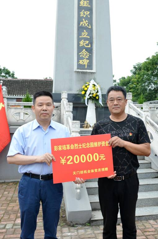 雨霽初晴,風(fēng)清氣爽。2019年6月29日下午,天門紡機(jī)50多名黨員和入黨積極分子,懷著崇高的敬意,來到位于天門盧市鎮(zhèn)彭家垴村的烈士紀(jì)念園舉行紀(jì)念中國共產(chǎn)黨成立九十八周年主題黨日活動(dòng)。盧市鎮(zhèn)委、鎮(zhèn)政府及彭家垴村黨支部主要負(fù)責(zé)人熱情接待并參加了活動(dòng)。