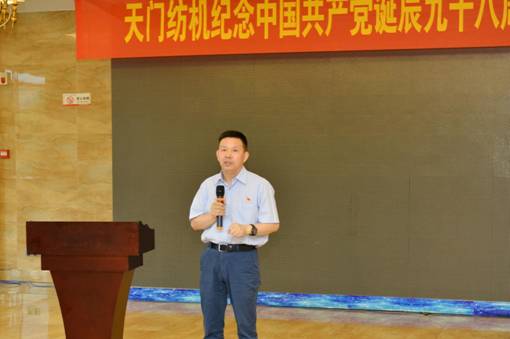 參觀結(jié)束后,全體人員返回市區(qū)君佳酒店舉行主題黨日活動(dòng)的最后兩個(gè)議程。焦倫進(jìn)總經(jīng)理作了題為“堅(jiān)定信心,敢于擔(dān)當(dāng),努力開創(chuàng)天門紡機(jī)高質(zhì)量發(fā)展新局面”的半年工作報(bào)告,他動(dòng)員黨員干部堅(jiān)定信念,增強(qiáng)動(dòng)力,創(chuàng)造業(yè)績,為打造天門紡機(jī)百年老字號企業(yè)而努力奮斗;緊接著,沈方勇董事長以“改革發(fā)展關(guān)鍵時(shí)期的歷史使命”為題,發(fā)表即興演講。從上下五千年的文明史,到九十八個(gè)春秋的中國共產(chǎn)黨奮斗史,縱橫捭闔,借史鑒今。他號召黨員干部發(fā)揚(yáng)黨的優(yōu)良傳統(tǒng),不忘初心,牢記使命,在各自的崗位上加倍努力工作,充分發(fā)揮黨員的先鋒模范作用,無愧于共產(chǎn)黨員的光榮稱號。