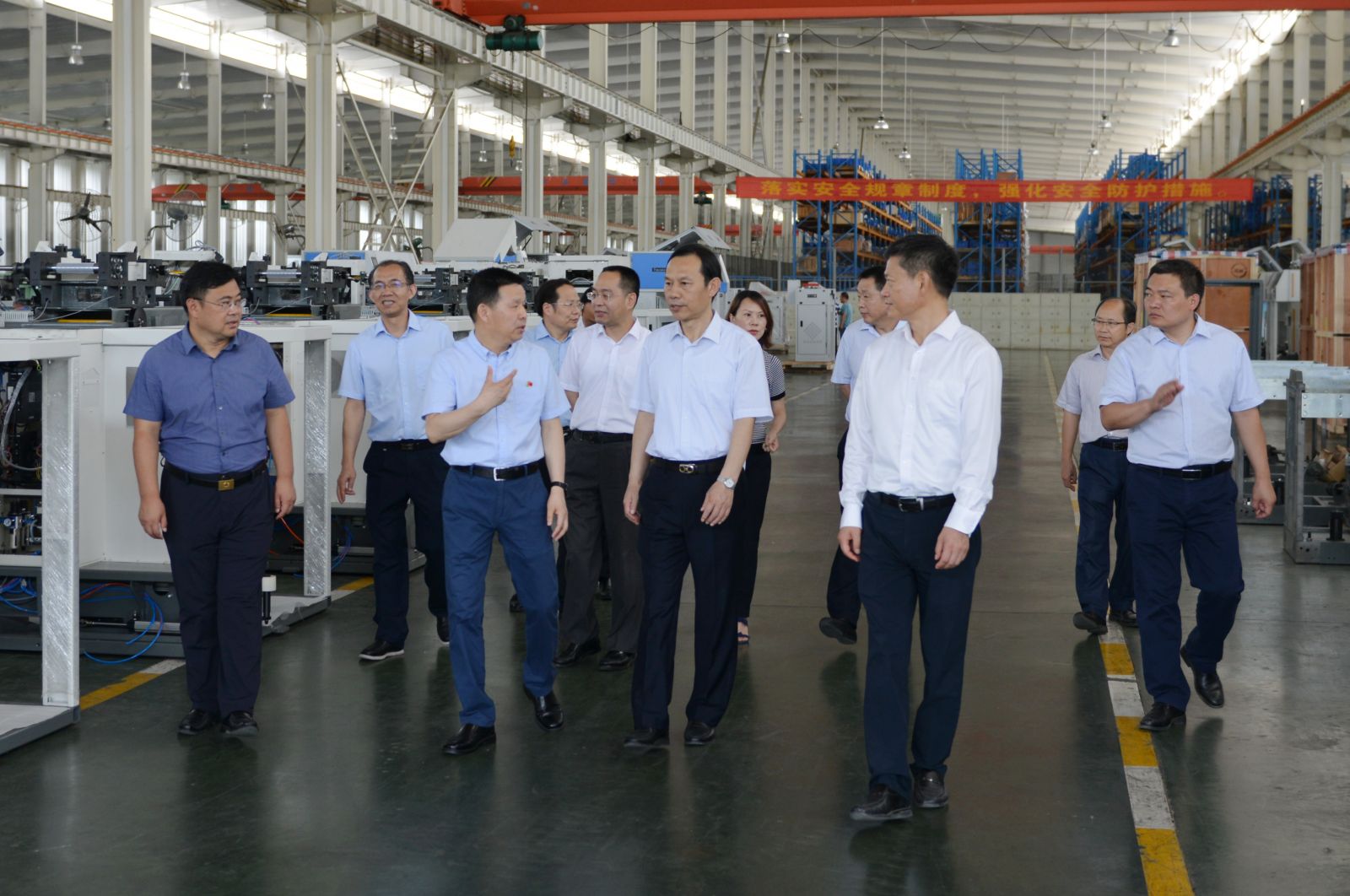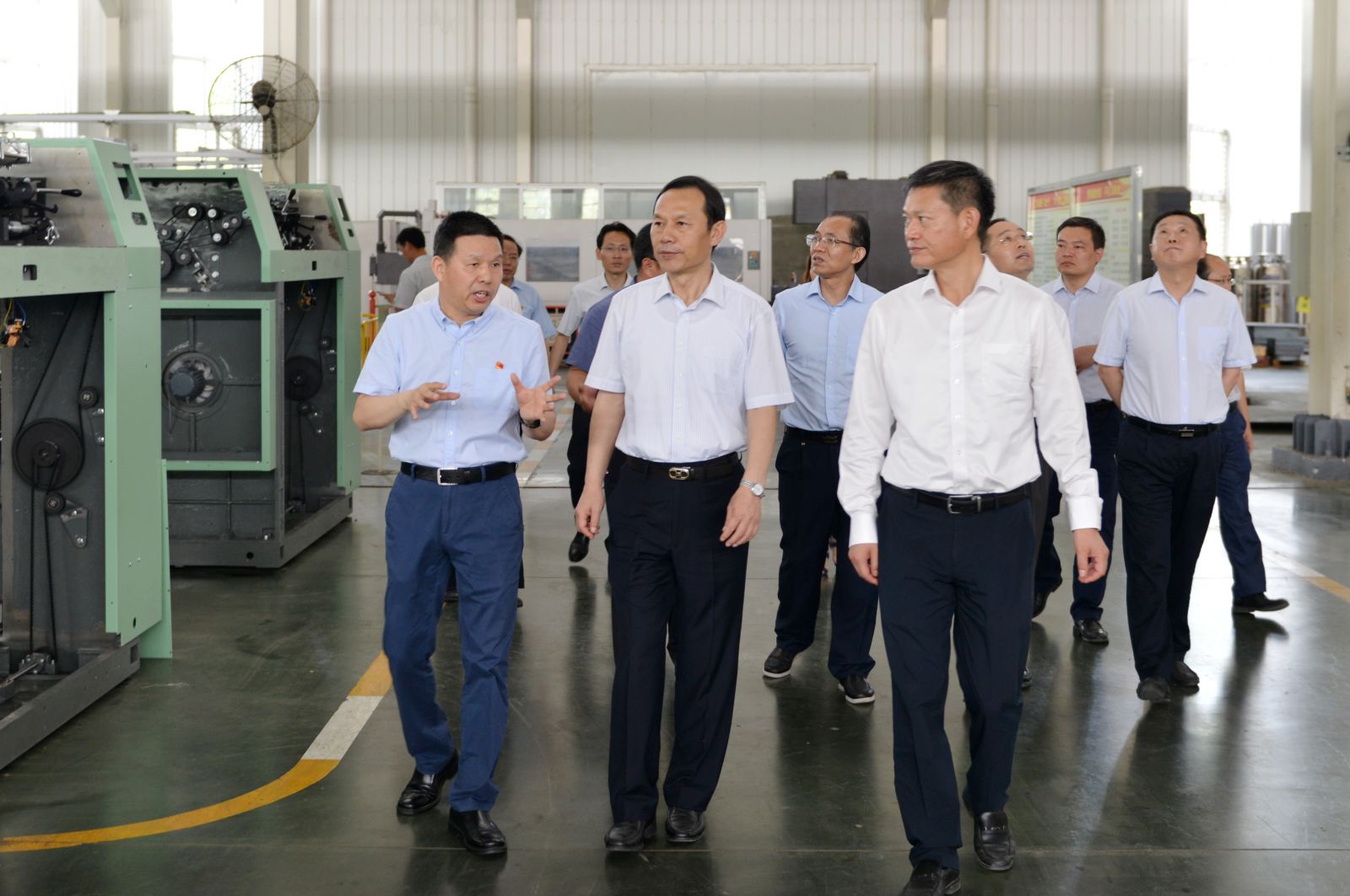 2019年7月16日上午,湖北省委副書記、武漢市委書記馬國(guó)強(qiáng)在天門市委書記莊光明的陪同下,考察了天門紡機(jī)。公司董事長(zhǎng)沈方勇引導(dǎo)馬書記一行參觀了生產(chǎn)現(xiàn)場(chǎng)和綜合展示廳,并向馬書記介紹了企業(yè)基本情況。沈方勇說:天門紡機(jī)是一家老字號(hào)機(jī)械制造企業(yè),通過改革、改制、改造,成為國(guó)內(nèi)集研發(fā)、生產(chǎn)、銷售于一體的紡織裝備重要供應(yīng)商和中國(guó)紡織機(jī)械協(xié)會(huì)副會(huì)長(zhǎng)單位,主導(dǎo)產(chǎn)品棉紡并條機(jī)在國(guó)內(nèi)無論生產(chǎn)規(guī)模還是產(chǎn)銷量均處于領(lǐng)先地位。雖然今年以來中美貿(mào)易摩擦給行業(yè)帶來了許多不利影響,但目前公司生產(chǎn)經(jīng)營(yíng)運(yùn)行正常,新產(chǎn)品研發(fā)后勁十足,下一個(gè)趕超的目標(biāo)是代表世界先進(jìn)水平的瑞士立達(dá)和德國(guó)特呂茨勒的同類產(chǎn)品,力爭(zhēng)打造國(guó)際品牌,實(shí)現(xiàn)可持續(xù)發(fā)展。馬書記聽到匯報(bào)后表示贊賞,希望天門紡機(jī)今后在產(chǎn)品技術(shù)上不斷創(chuàng)新,在品牌培育上繼續(xù)發(fā)力,在生產(chǎn)經(jīng)營(yíng)上進(jìn)一步做大做強(qiáng),為民族工業(yè)爭(zhēng)氣爭(zhēng)光。