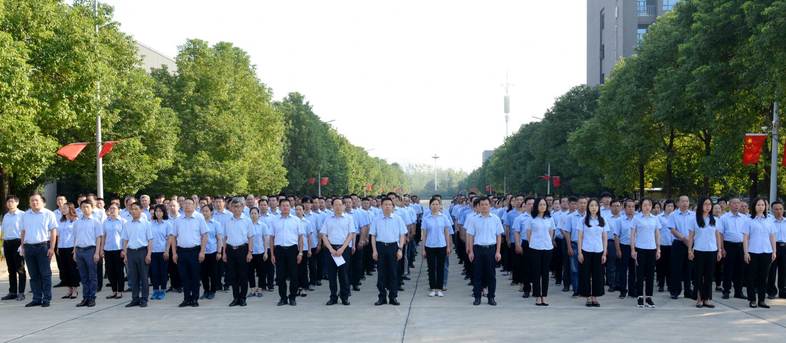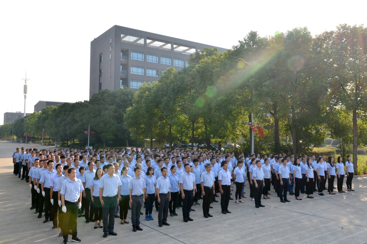 2019年9月30日早晨,一輪紅日從東方升起,給大地涂抹上一層金輝。天門紡機(jī)400多名員工在公司廣場(chǎng)列成方隊(duì),為即將舉行的升國(guó)旗、唱國(guó)歌活動(dòng)作準(zhǔn)備。