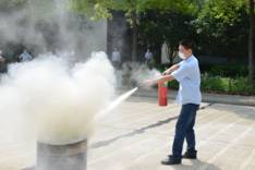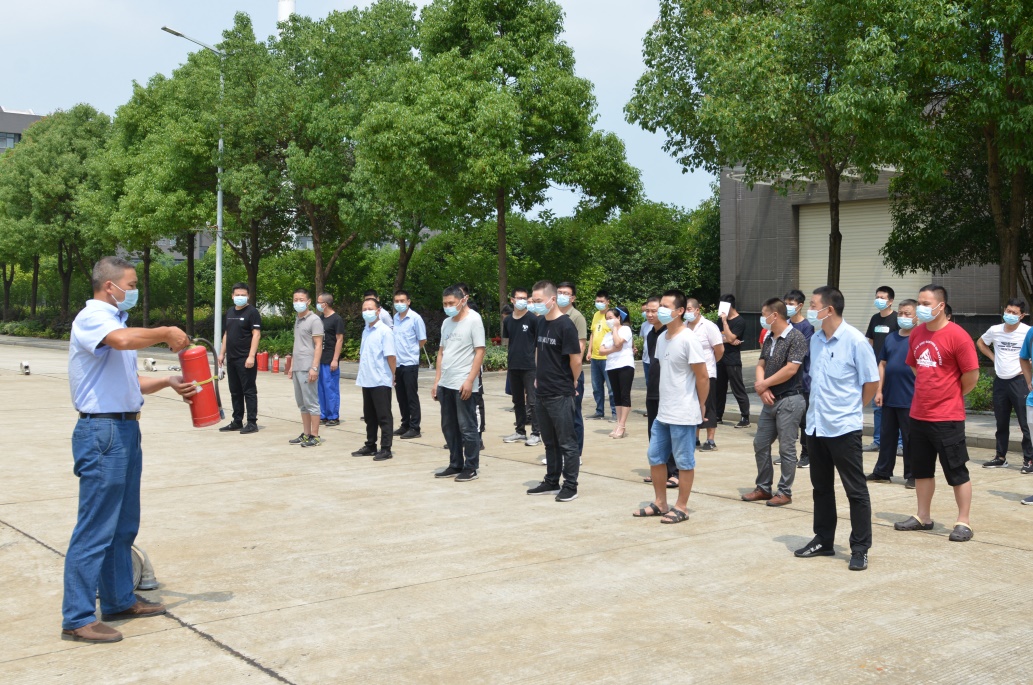 組織公司義務(wù)消防員、倉庫管理員、新員工進(jìn)行消防器材實(shí)操培訓(xùn)現(xiàn)場(chǎng)演練