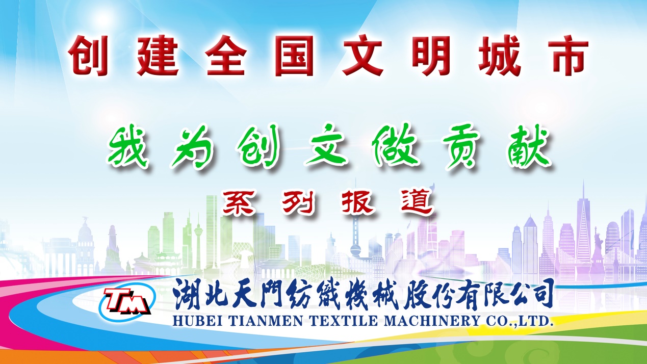 編者按:在全市上下如火如荼開展“創(chuàng)建全國文明城市”活動之際,天門紡機動員全體員工開展“我為創(chuàng)文做貢獻”系列活動,從廠區(qū)一角一落的環(huán)境衛(wèi)生整治,到員工的一言一行一衣,從車間里“6S”管理的推廣應(yīng)用,到對產(chǎn)品品質(zhì)的不斷改進提升,從誠信經(jīng)營,到客戶至上,無一不體現(xiàn)著天門紡機對文明精髓的理解、對員工文明素養(yǎng)的塑造以及發(fā)展高質(zhì)量工業(yè)文明的執(zhí)著追求。結(jié)合“我為創(chuàng)文明做貢獻”系列活動的持續(xù)深入開展,公司將對系例活動進行持續(xù)報道。