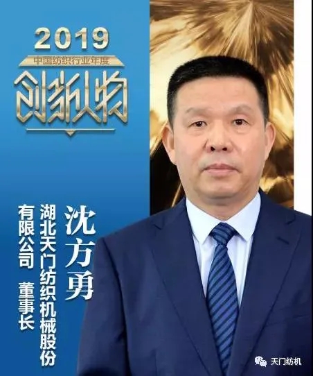 天門紡機董事長沈方勇作為“2019中國紡織行業(yè)年度創(chuàng)新人物”獲獎者,將于近期赴山西太原參加中國紡聯(lián)第四屆五次理事會,并接受表彰。