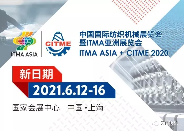 中國國際紡織機(jī)械展覽會(huì)暨ITMA亞洲展覽會(huì)將于2021年6月12-16日在上海國家會(huì)展中心(虹橋)舉辦,湖北天門紡織機(jī)械股份有限公司將攜三款代表性產(chǎn)品TM19型并條機(jī)、TM15型并條機(jī)、TM65型細(xì)紗機(jī)亮相本次紡機(jī)展,敬請(qǐng)期待,屆時(shí)歡迎大家蒞臨展位參觀交流!