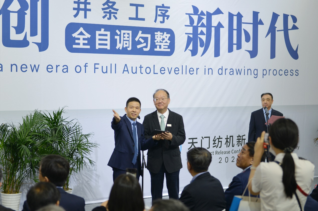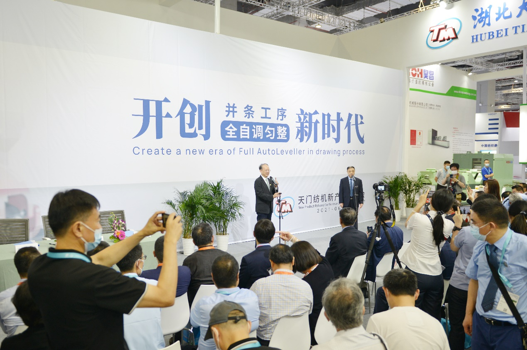6月12日,天門紡機(jī)在上海的中國國際紡織機(jī)械展覽會暨ITMA亞洲展覽會上,舉行“開創(chuàng)并條工序全自調(diào)勻整新時代”新品發(fā)布會,自主研發(fā)的全球首款超大卷裝帶自調(diào)勻整并條機(jī)TM19、運(yùn)用USG3系統(tǒng)及多項(xiàng)專利技術(shù)的并條機(jī)TM15、帶全伺服控制的多功能TM65型細(xì)紗機(jī)首發(fā)上市。