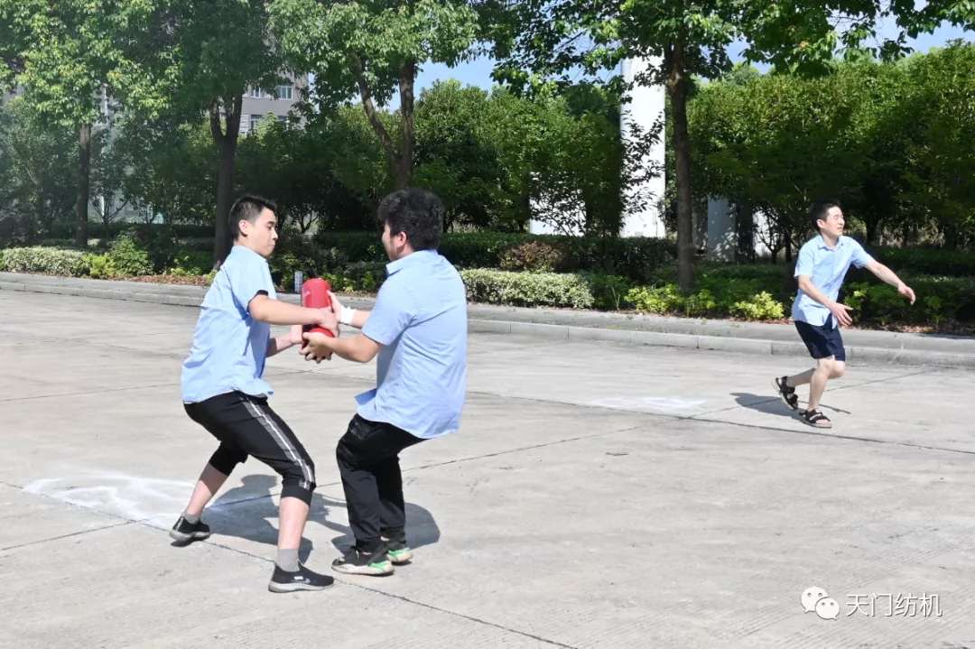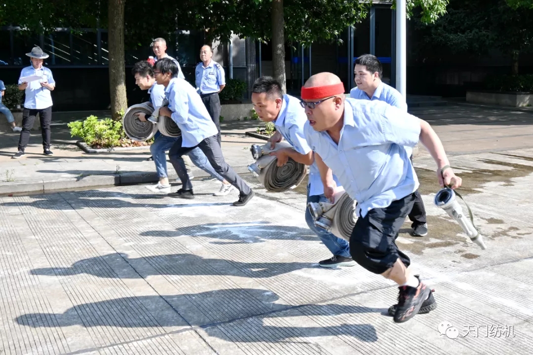 為鞏固“安全生產(chǎn)月”活動效果,檢驗消防應(yīng)急處置能力,7月24日,天門紡機經(jīng)過認(rèn)真籌備,舉辦了年度消防技能競賽活動,活動分為滅火器接力撲救火災(zāi)和消防水帶協(xié)作兩個項目,來自公司各部室、車間的8支隊伍參加了競賽。