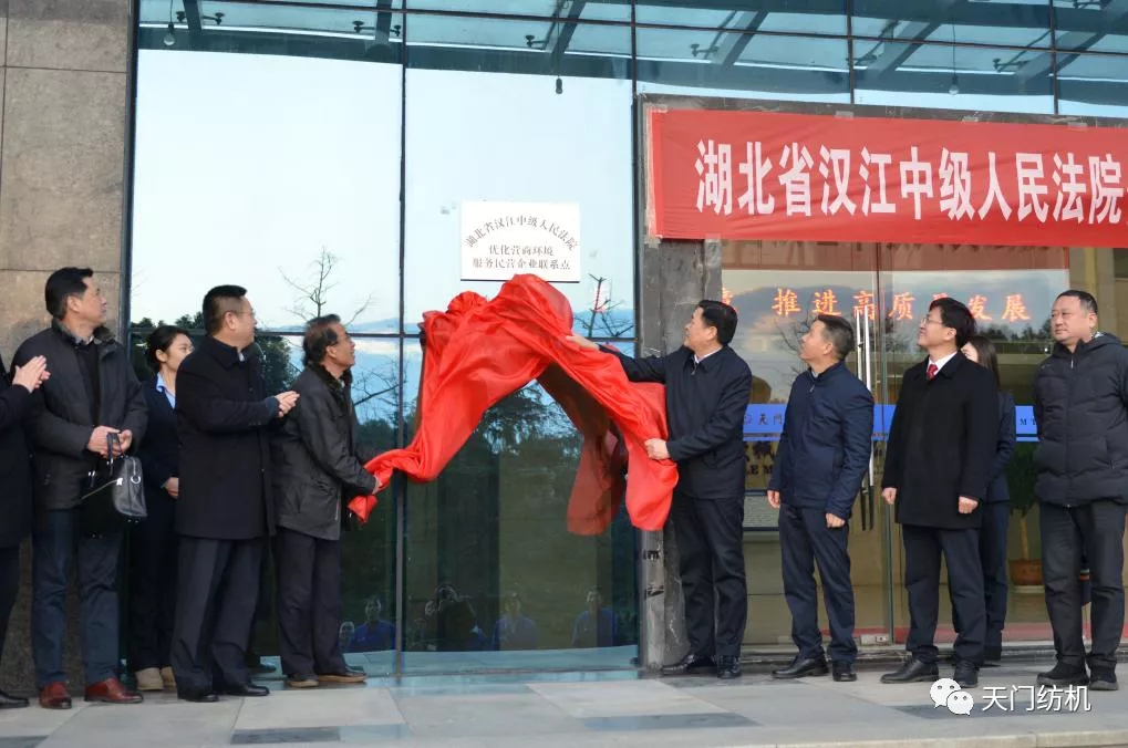 12月29日,“湖北省漢江中級人民法院優(yōu)化營商環(huán)境服務(wù)民營企業(yè)聯(lián)系點(diǎn)”掛牌儀式在天門紡機(jī)舉行。湖北省高級人民法院二級高級法官肖志堅,漢江中級人民法院院長徐少林,天門市人大常委會黨組書記、副主任董青平,天門市人民法院院長程超平等領(lǐng)導(dǎo)共同為聯(lián)系點(diǎn)揭牌。全國人大代表、天門紡機(jī)董事長沈方勇受牌。