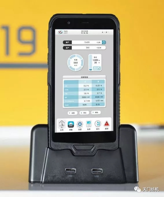 天門紡機(jī)緊密結(jié)合并條工序的特點(diǎn),成功運(yùn)用了集多種功能于一體的工業(yè)級手持終端,可以對T1系列并條機(jī)實施穩(wěn)定、可靠、精準(zhǔn)的無線操控。