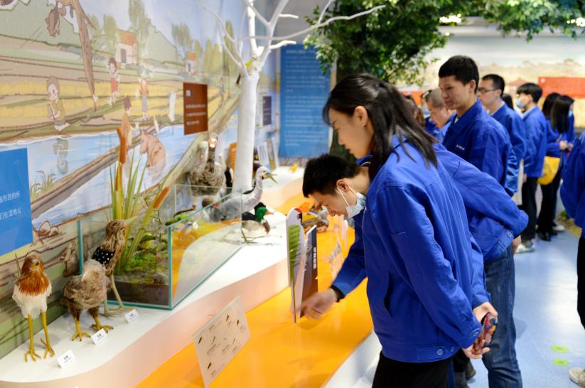 在公園管理員的導(dǎo)引下,我們拾級(jí)而上,參觀了科普館。這座科普館是以張家湖歷史、水文、生態(tài)為脈絡(luò),傾心打造的集生動(dòng)、趣味于一體的現(xiàn)代視聽平臺(tái),還原了農(nóng)耕時(shí)代人類休養(yǎng)生息的原貌和花鳥魚蟲百態(tài)。走在曲曲折折的參觀回廊上,感覺耳朵不夠使,眼睛也不夠用,太多的信息總是撲面而來。同事們都在感嘆:真是不虛此行,既休閑、愉悅了身心,又學(xué)到了知識(shí),收獲滿滿。