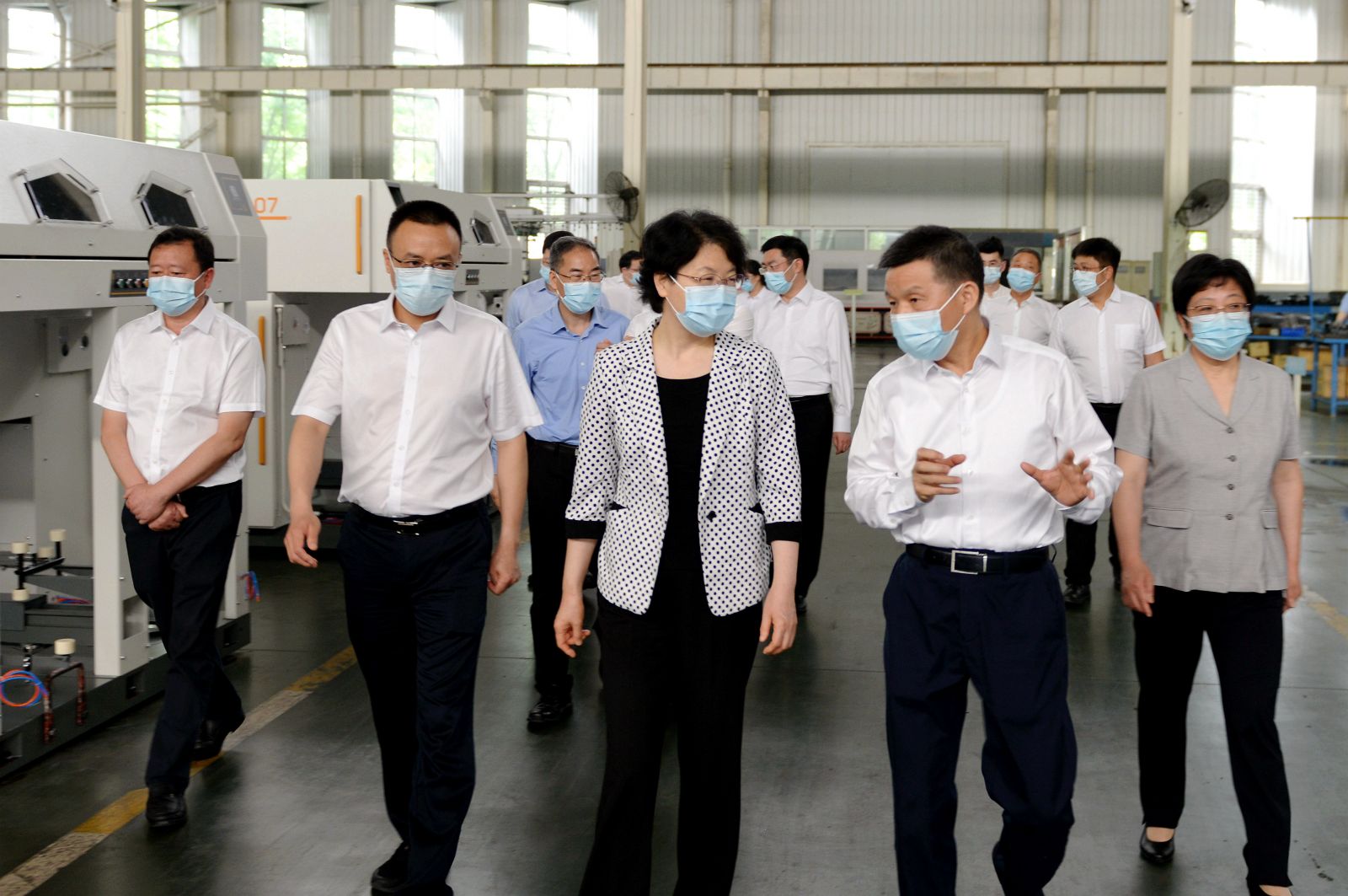6月2日上午,湖北省副省長肖菊華帶領(lǐng)省科技廳、省教育廳負責(zé)人一行,在天門市委書記易先榮、市長楊興銘的陪同下調(diào)研天門紡機。