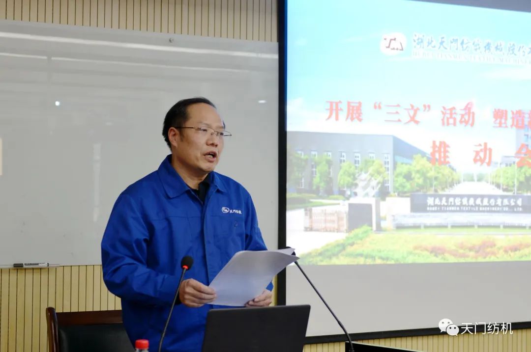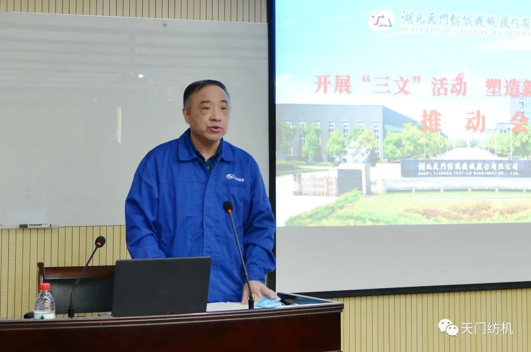 魯?shù)挛囊?,一是統(tǒng)一思想,提高認識:“三文”活動的理念既是在當(dāng)前國際形勢復(fù)雜多變、新冠疫情反復(fù)無常、國內(nèi)經(jīng)濟受到嚴重沖擊、行業(yè)形勢日趨嚴峻的背景下提出的,目的和意義只有一個,就是要通過“三文”活動全面提高員工素質(zhì)、塑造新型員工隊伍、建立現(xiàn)代企業(yè)管理制度、實現(xiàn)高質(zhì)量發(fā)展,以應(yīng)對復(fù)雜多變的國內(nèi)外經(jīng)濟形勢,讓天門紡機立于不敗之地;“三文”活動的理念也是公司的一種文化傳承。十多年前,公司制定實施“提精神、創(chuàng)精品、當(dāng)精英”的“三精”戰(zhàn)略,并以此為引領(lǐng),推動新產(chǎn)品開發(fā)、技術(shù)改造、品牌建設(shè)等工作,促進企業(yè)快速發(fā)展;兩年前,公司提出優(yōu)化社會、市場、內(nèi)部“三個”生態(tài)的理念,通過營造“以人為本”的內(nèi)部生態(tài)、共生共享的社會生態(tài)、利他共贏的市場生態(tài),把包容、共享、全球化的發(fā)展理念貫徹到企業(yè)生產(chǎn)經(jīng)營之中,影響到行業(yè)及社會多個層面,使公司形象得到極大提升、軟硬實力與日俱增,推動了企業(yè)高發(fā)展。“三文”與“三個生態(tài)”一脈相承,著重于員工素質(zhì)教育、塑造新型員工隊伍、營造良好的內(nèi)部生態(tài),其落腳點和最終目標與后者是完全一致的。同時,開展“三文”活動是企業(yè)文化建設(shè)永不過時、永遠不可或缺的重要內(nèi)容。通過文明禮儀教育,提高員工個人素質(zhì)、樹立企業(yè)良好形象,是當(dāng)前公司生產(chǎn)經(jīng)營和優(yōu)化人力資源的內(nèi)在需要;通過開展文化素質(zhì)提升活動,引導(dǎo)員工樹立正確的世界觀、人生觀、價值觀是員工自身工作、生活和企業(yè)文化建設(shè)的主觀要求;通過文體活動,促進員工心身健康、增強企業(yè)凝聚力是企業(yè)和員工共同的美好愿望。因此,我們要把“三文”活動上升到企業(yè)生產(chǎn)經(jīng)營和文化建設(shè)一個更新的高度。二是明確特點,創(chuàng)新亮點:“三文”活動是長期性活動,是全方位的活動,是全員參與的活動,因此,我們一要堅持不懈,不斷努力;二要各方配合,通力協(xié)作;三要全體總動員,積極投入到各項活動中。同時,我們要多出主意、多想點子,創(chuàng)新活動的方式方法或形式內(nèi)容,創(chuàng)建天門紡機特色文化、特有文化和經(jīng)典文化。三是增強責(zé)任感,層層抓落實:在“三文”活動的通知中,我們已經(jīng)確定了組織機構(gòu),明確了目標任務(wù),希望公司各部門負責(zé)人、活動小組各位負責(zé)同志,切實擔(dān)起責(zé)任,抓好落實。四是科學(xué)制定計劃,注重實效:我們在制定計劃時,既要合理安排時間,兼顧公司正常的生產(chǎn)經(jīng)營,又要統(tǒng)籌安排,協(xié)同推進,使生產(chǎn)經(jīng)營與文化建設(shè)相得益彰。