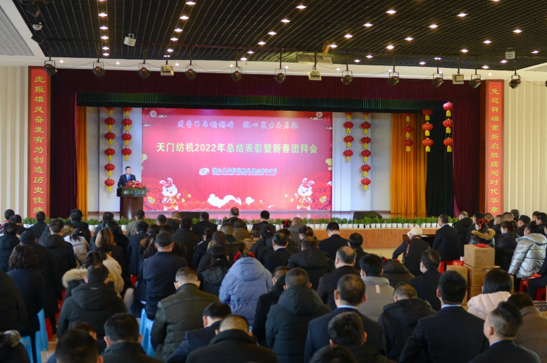 2023年1月18日下午,天門紡機(jī)艷陽高照、喜氣盈門,2022年工作總結(jié)表彰暨新春團(tuán)拜會(huì)在綜合樓多功能廳隆重舉行。