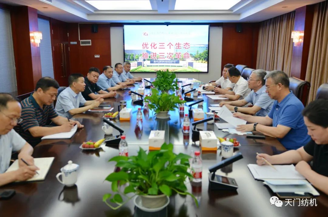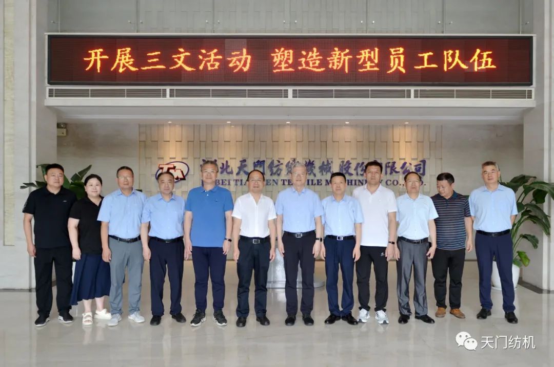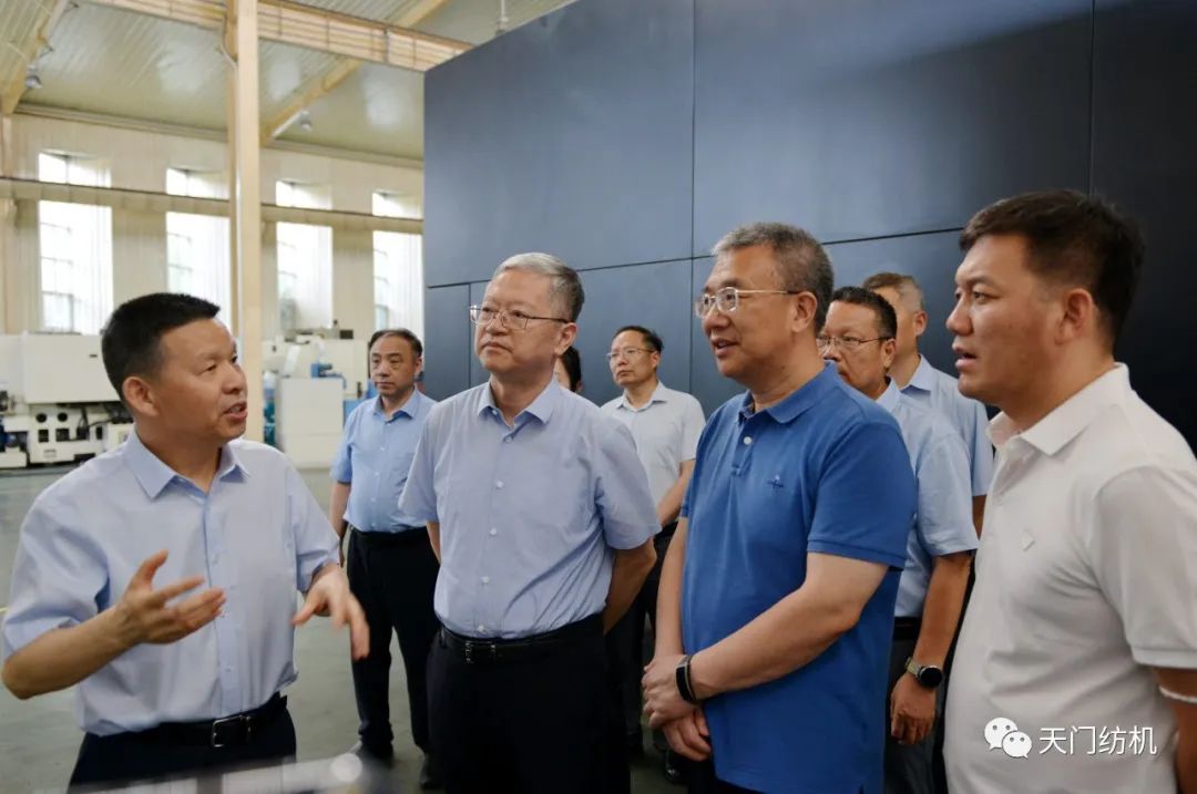 2023年6月27日下午,中國(guó)紡織工業(yè)聯(lián)合會(huì)秘書(shū)長(zhǎng)夏令敏,中國(guó)紡織工業(yè)聯(lián)合會(huì)流通分會(huì)副會(huì)長(zhǎng)徐建華、秘書(shū)長(zhǎng)王水元蒞臨天門紡機(jī)調(diào)研,湖北省經(jīng)信廳副廳長(zhǎng)周開(kāi)斌、消費(fèi)品工業(yè)處副處長(zhǎng)鄧龍陪同調(diào)研。