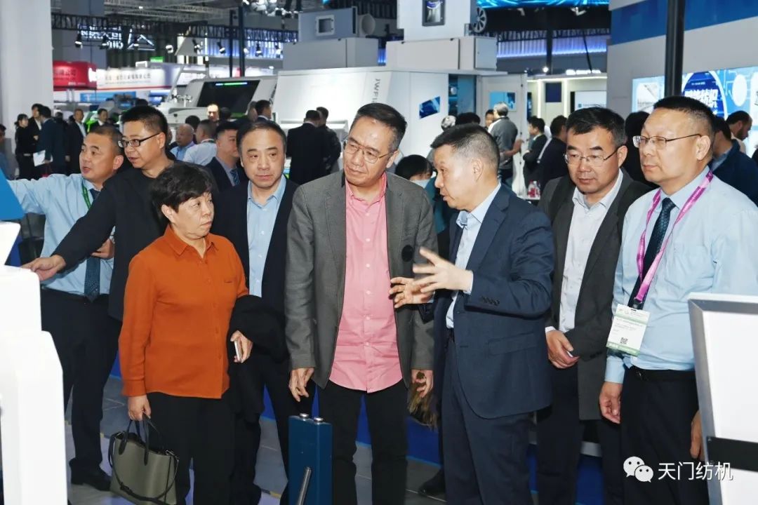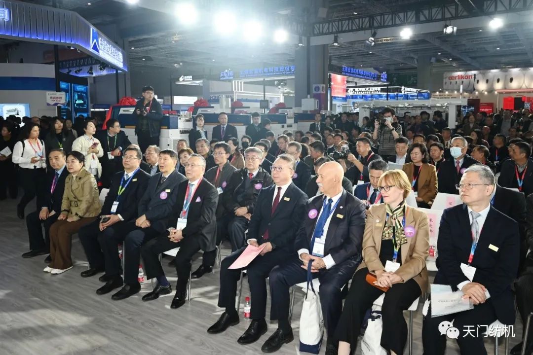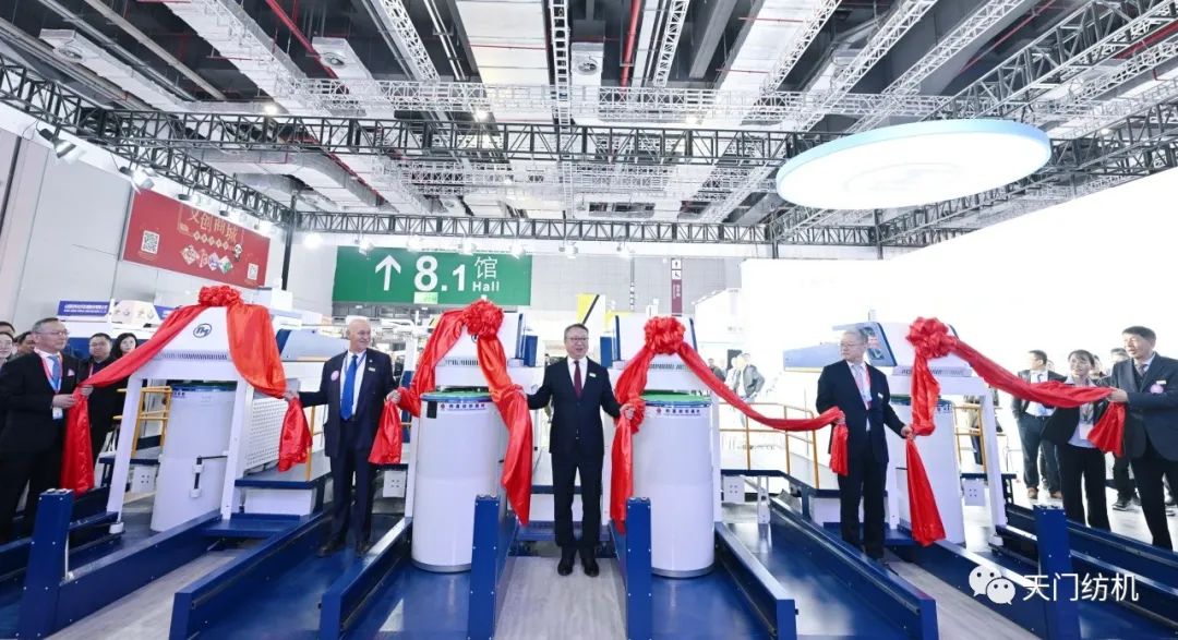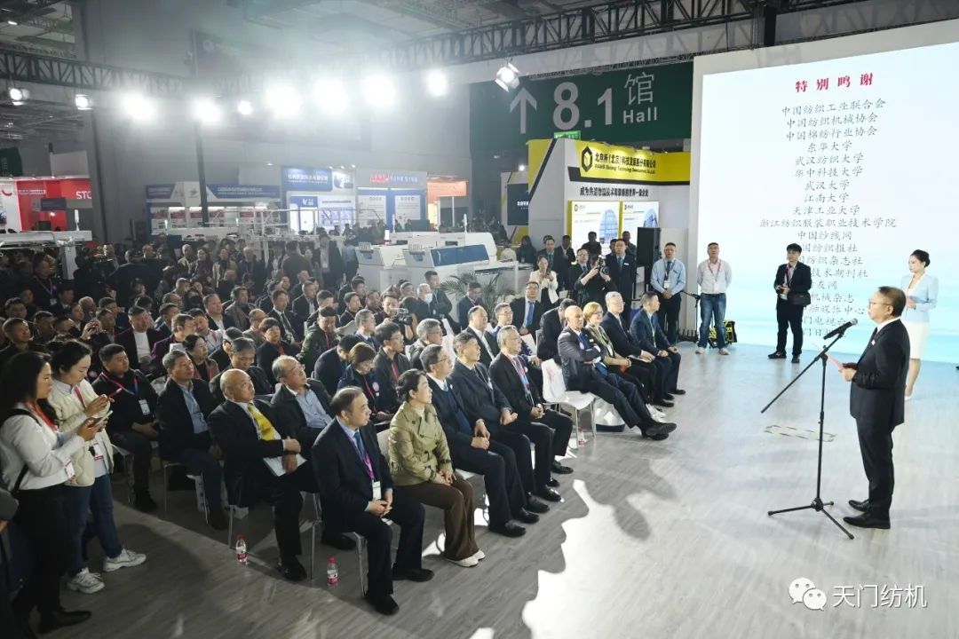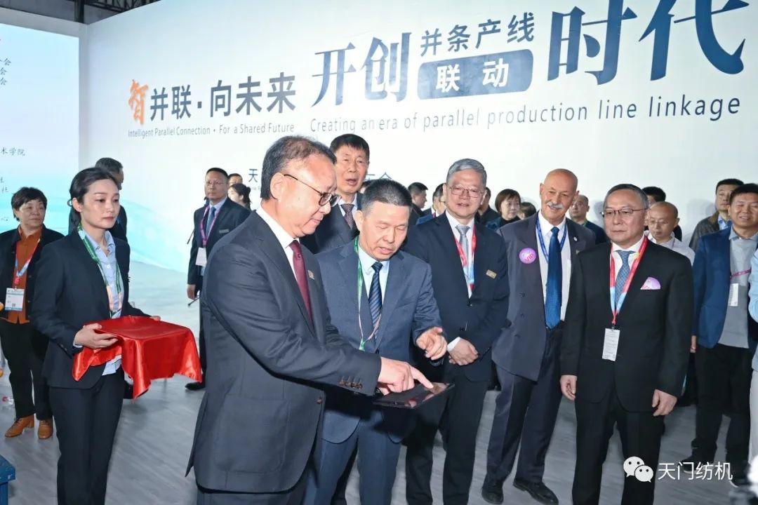 中國(guó)紡織工業(yè)聯(lián)合會(huì)會(huì)長(zhǎng)孫瑞哲,副會(huì)長(zhǎng)夏令敏、徐迎新,老領(lǐng)導(dǎo)張延愷副會(huì)長(zhǎng)和歐洲紡織機(jī)械制造商委員會(huì)主席Mr. Ernesto Maurer等嘉賓共同揭幕,天門紡機(jī)T2、T3系列新產(chǎn)品正式亮相。