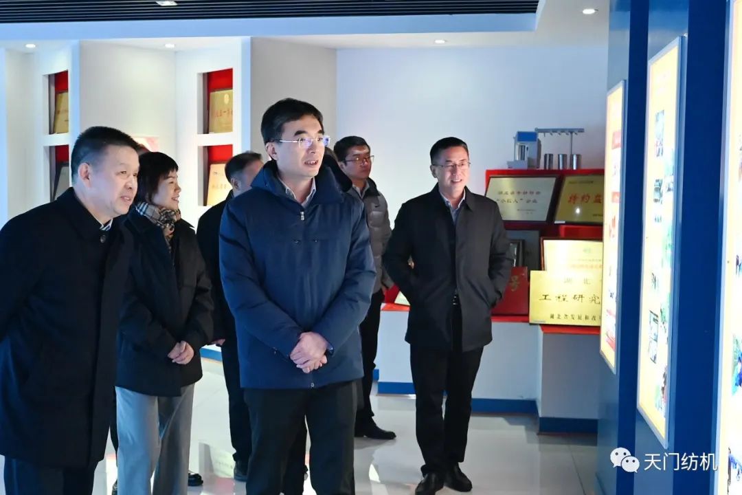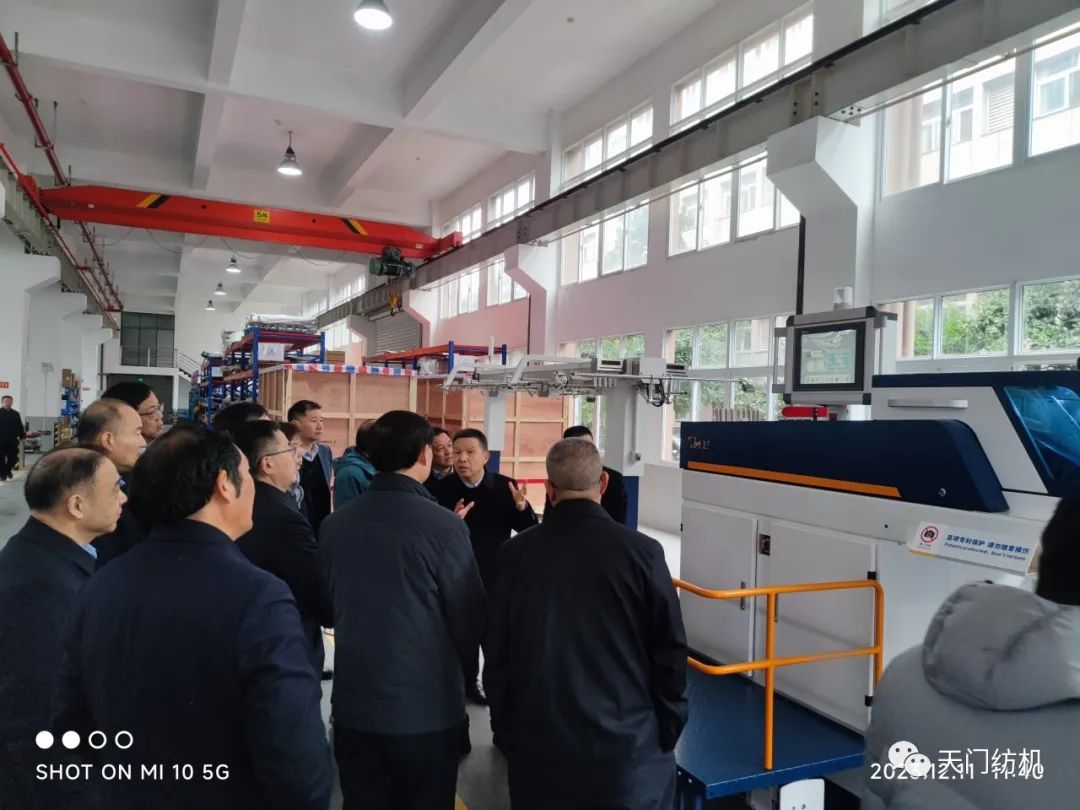 2023年12月11日,中國紡織工業(yè)聯合會副會長端小平,中國紡織工業(yè)聯合會信息中心黨委書記、社會責任辦主任閻巖,中國棉紡織行業(yè)協(xié)會會長董奎勇、副會長景慎全等領導專程調研天門紡機位于武漢的研發(fā)中心及天門基地。