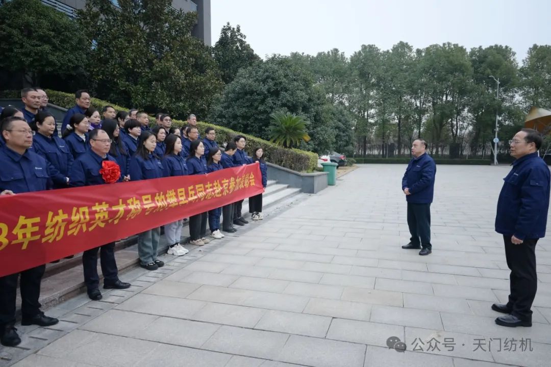 2024年1月15日上午,天門紡機部室員工齊聚科技樓大廳,歡送公司品控總監(jiān)、高級檢驗師樊早兵同志赴京參加“2023年中國紡織人才大會”。公司總經(jīng)理焦倫進在歡送活動中即席講話,他說,樊早兵同志被授予“2023年度新時代紡織英才”,是中紡聯(lián)對他取得的顯著成績及奉獻精神的充分肯定,實至名歸。他得到如此殊榮是天門紡機的驕傲,全體員工要以他為榜樣,努力工作,奮發(fā)有為,為公司高質量發(fā)展貢獻應有的力量。送行的員工敲鑼打鼓,載歌載舞,把現(xiàn)場氣氛推向高潮。