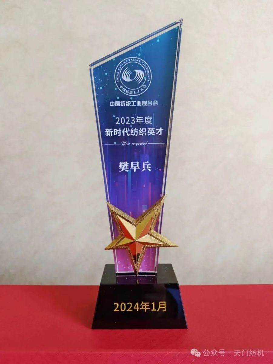 2024年1月16日,樊早兵同志在全國人大會議中心參加“2023年中國紡織人才大會”,受到中紡聯(lián)表彰,獲得“2023年度新時代紡織英才”獎牌和榮譽證書。