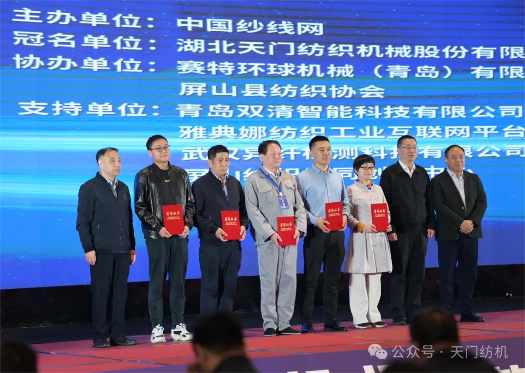 在領(lǐng)導(dǎo)和嘉賓致辭之后,舉行了“天門紡機(jī)杯”第12屆全國紡紗技術(shù)創(chuàng)新研討會論文頒獎(jiǎng)活動。中國紡織機(jī)械協(xié)會會長顧平、中國紗線網(wǎng)總編王果剛、天門紡機(jī)總經(jīng)理焦倫進(jìn)為獲獎(jiǎng)作者頒獎(jiǎng)。