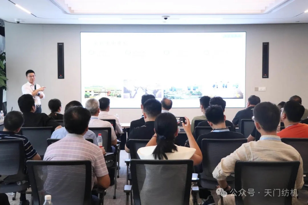 在游學(xué)班總結(jié)大會(huì)上,天門(mén)紡機(jī)總經(jīng)理焦總對(duì)本次學(xué)習(xí)交流活動(dòng)給予了很高評(píng)價(jià),他說(shuō),傳承是企業(yè)賡續(xù)的靈魂,創(chuàng)新是企業(yè)發(fā)展的引擎。天門(mén)紡機(jī)從事紡機(jī)裝備生產(chǎn)經(jīng)營(yíng)40余年,起于深厚的文化淵源,得于不斷的產(chǎn)品創(chuàng)新。公司近些年推出的T1高速高效系列并條機(jī)已成為熱銷(xiāo)產(chǎn)品,目前正在研發(fā)的完全獨(dú)立傳動(dòng)的T2系列產(chǎn)品呼之欲出,即將推向市場(chǎng)。他強(qiáng)調(diào),隨著信息技術(shù)高速發(fā)展,智能化改造和數(shù)字化轉(zhuǎn)型已經(jīng)成為行業(yè)發(fā)展的必然趨勢(shì)。為著眼未來(lái),天門(mén)紡機(jī)投入大量的人力物力建設(shè)“智慧工廠”,促進(jìn)公司“智改數(shù)轉(zhuǎn)”,并力爭(zhēng)通過(guò)自已研發(fā)生產(chǎn)的智能化裝備助推紡織行業(yè)“智改數(shù)轉(zhuǎn)”,實(shí)現(xiàn)雙贏。