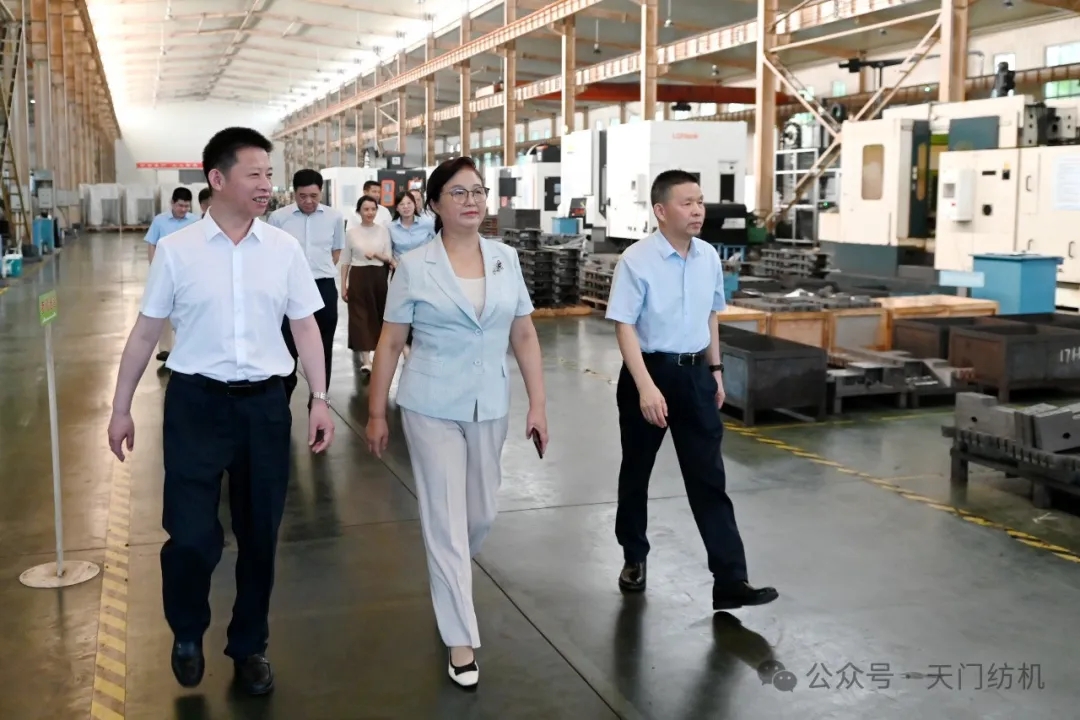 王玲主任一行深入天門紡機生產(chǎn)車間,考察企業(yè)運行情況。沈方勇董事長向王玲主任重點介紹了近幾年開展“智慧工廠”建設、推進數(shù)字化轉型和智能化改造的總體思路及工作進度。