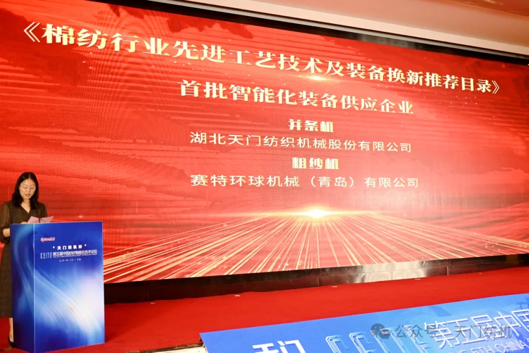 天門(mén)紡機(jī)系列并條機(jī)獲得“棉紡行業(yè)先進(jìn)工藝技術(shù)及裝備換新推薦”