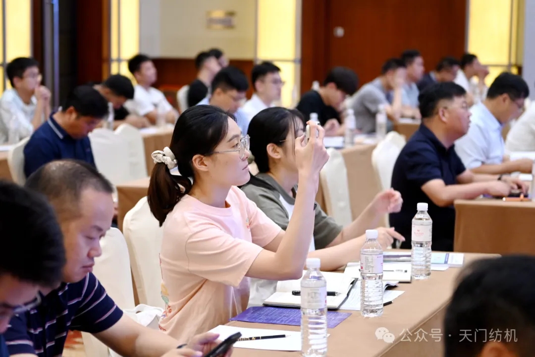 天門(mén)紡機(jī)總經(jīng)理焦倫進(jìn)作了熱情洋溢的致辭。他說(shuō),棉紡織行業(yè)在嚴(yán)峻復(fù)雜的國(guó)際環(huán)境影響下,受到原料供應(yīng)端沖擊及終端有效需求不足的雙向擠壓,恢復(fù)力度偏弱,旺季不旺、淡季延續(xù)局面長(zhǎng)時(shí)間維持,行業(yè)承受壓力極其明顯。面對(duì)困難與挑戰(zhàn),我們既要增強(qiáng)風(fēng)險(xiǎn)意識(shí)和底線思維,積極主動(dòng)應(yīng)戰(zhàn);又要保持戰(zhàn)略定力,通過(guò)發(fā)展新質(zhì)生產(chǎn)力,提高創(chuàng)新能力和全要素生產(chǎn)率,加快數(shù)字化轉(zhuǎn)型和智能化改造,推動(dòng)裝備技術(shù)升級(jí),實(shí)現(xiàn)高質(zhì)量發(fā)展。同時(shí),要堅(jiān)定發(fā)展信心,加速闖過(guò)新舊動(dòng)能轉(zhuǎn)換陣痛期,強(qiáng)化行業(yè)自律,防止“內(nèi)卷式”惡性競(jìng)爭(zhēng)。