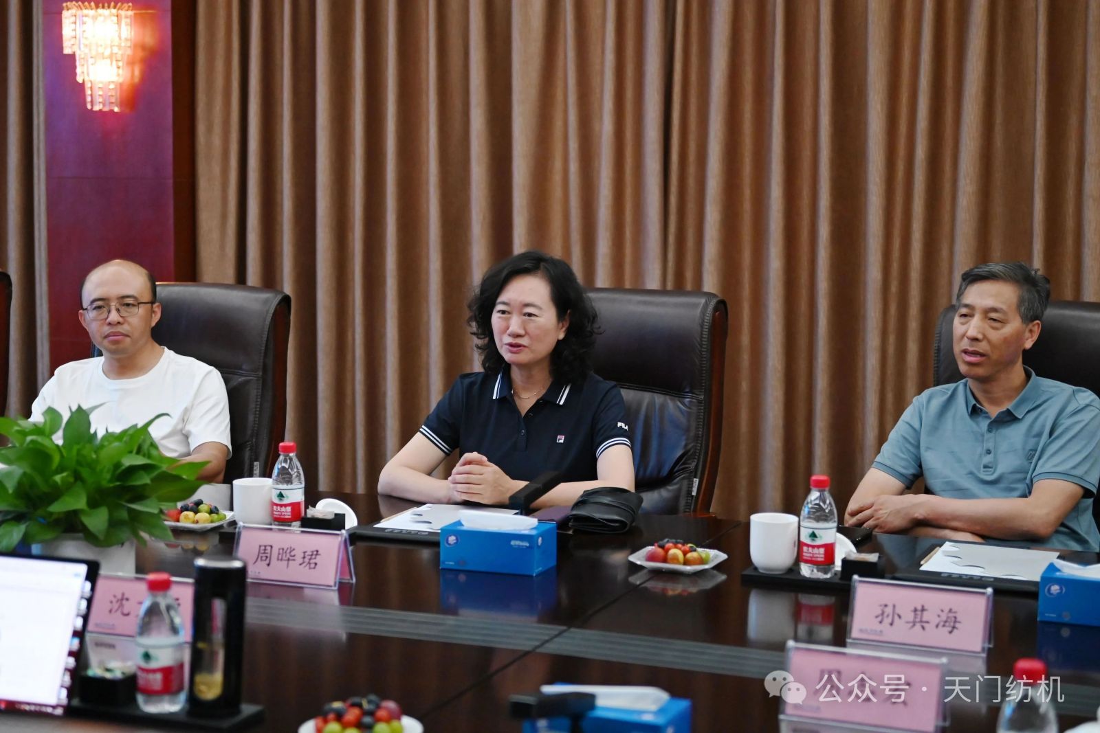 作為本次活動的支持單位,天門紡機盛情邀請了一批行業(yè)領(lǐng)袖和青年翹楚蒞臨公司指導(dǎo)交流。7月9日上午,無錫一棉原董事長周曄珺、中國紗線網(wǎng)副總裁孫其海、鐵門關(guān)星宇信達總經(jīng)理郭超、河南盛泰越南棉紡總經(jīng)理馬強強等貴賓蒞臨公司調(diào)研;當(dāng)日下午,鄆城東盛總經(jīng)理劉顯豐、新疆智亞總經(jīng)理劉顯赫、福建云杉總經(jīng)理許立、廣東洪興實業(yè)股份有限公司營銷總監(jiān)柯楷楠、鄆城晨龍紡織總經(jīng)理何邦超等貴賓到訪公司。公司董事長沈方勇、總經(jīng)理焦倫進全程熱情接待。