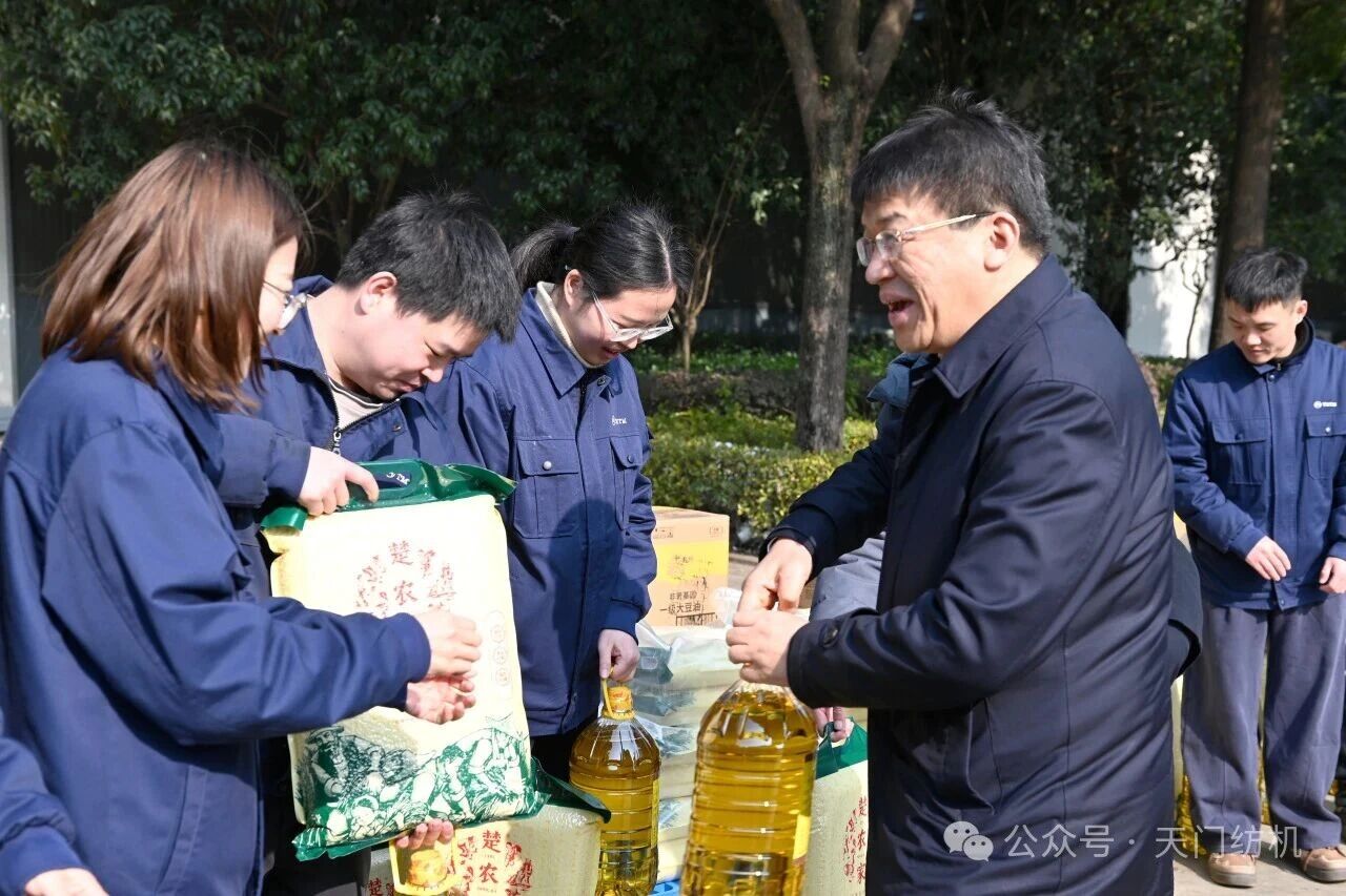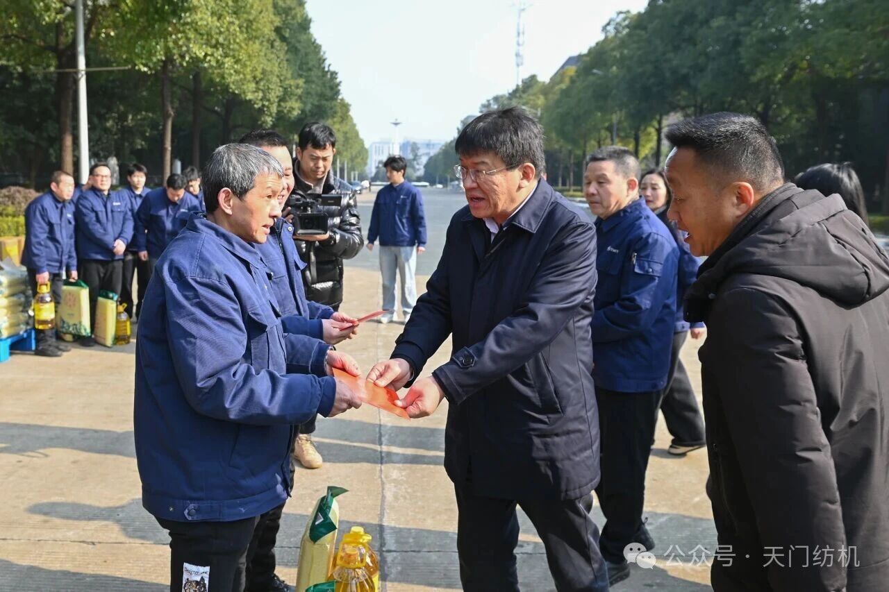 1月23日,湖北省總工會黨組成員、副主席馮家欣,省職工科技文化中心主任顧丹莉,省總工會經(jīng)技部副部長余成剛等領(lǐng)導(dǎo),在天門市人大常委會黨組成員、副主任陶家文,市總工會黨組書記、常務(wù)副主席江文等領(lǐng)導(dǎo)的陪同下蒞臨天門紡機(jī),開展2026年春節(jié)送溫暖走訪慰問活動,為我公司車間班組一線職工及困難職工,送上工會組織的“暖心大禮包”。公司董事長沈方勇、工會主席丁亮等公司領(lǐng)導(dǎo)熱情接待慰問組一行并參與慰問活動。