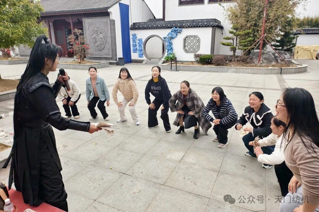抵達(dá)天門三國夢幻谷后,大家按分組有序開啟游玩時(shí)光。該景區(qū)分為三國文化風(fēng)情區(qū)與動力游樂項(xiàng)目區(qū)兩大板塊,十多處古風(fēng)場景玩法各異,10余位專業(yè)NPC扮演三國角色現(xiàn)場互動打卡,女工們積極參與游戲,贏取“景區(qū)銀票”,用銀票體驗(yàn)射箭敲鑼、投壺、抽簽等趣味游戲,兌換精美禮品,歡聲笑語回蕩在景區(qū)的每一個(gè)角落。